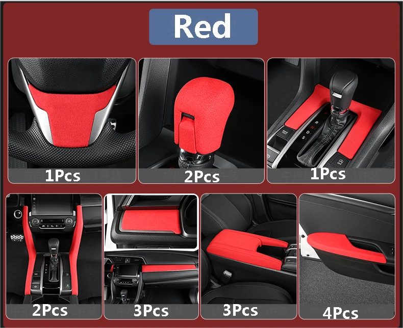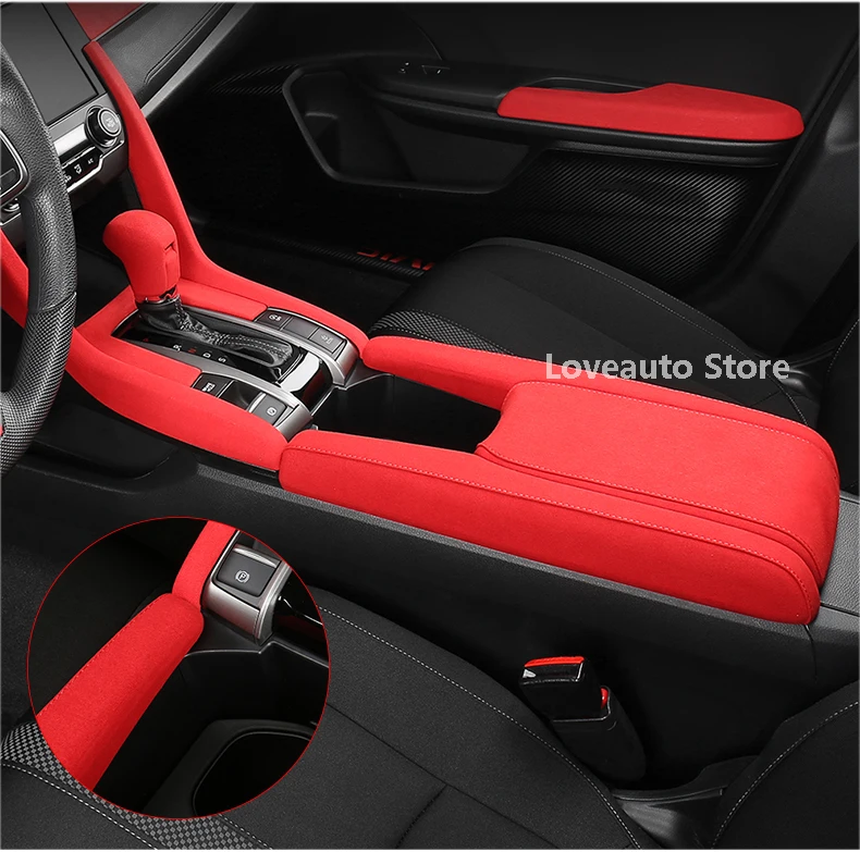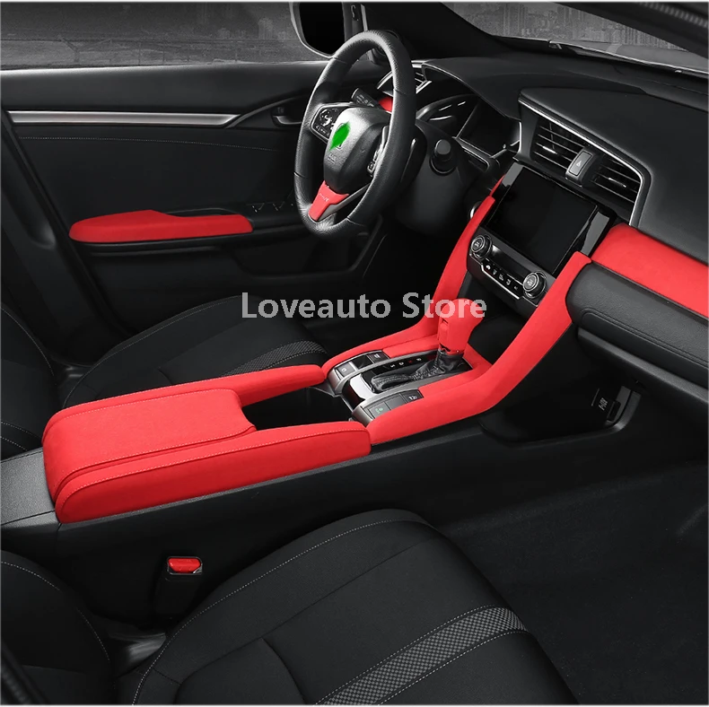Car Alcantara Center Console Water Cup Trim Interior Accessories for Honda Civic 10th 2016 2017 2018 2019 2020 2021