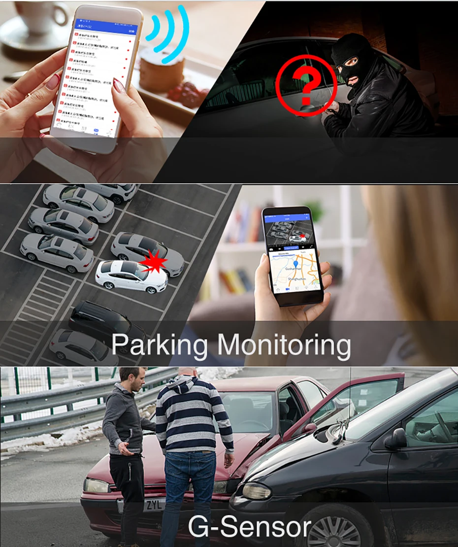 When someone near your car or vehicle starts to move, Automatically turn on and start recording when detects any impact or collision,the device automatically recording for few seconds,make sure 24hr Parking Guard.