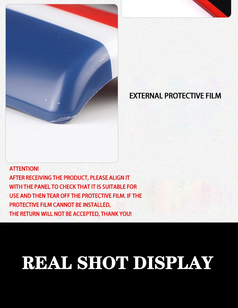 There is a protective film on the surface of the product. Please compare the panel accurately before tearing off the protective film. If the protective film is not suitable for automobiles, the protective film cannot be returned, thank you!