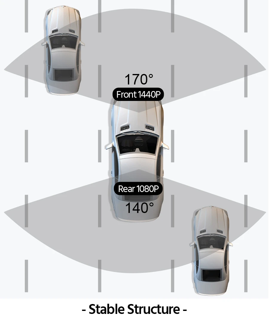 170 Degree Angle front camer with 140 Degree Angle Rear view Camera (Optional) that allows for simultaneously recording videos from two different angles. Two split view make you have clear view from front and back-up camera.