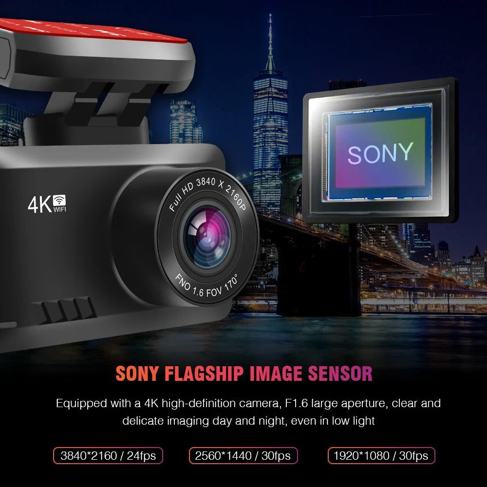 E-ACE B44 Dash Camera can record videos up to a resolution of 2160p (Ultra-HD).170° Ultra Wide A+ lens Viewing Angle allows a wider viewing angle to capture those important details side. The WDR function optimizes video quality with wider light range and image details. So you will find our camera captures clear & vivid license plates and road signs during the day as well as at night.