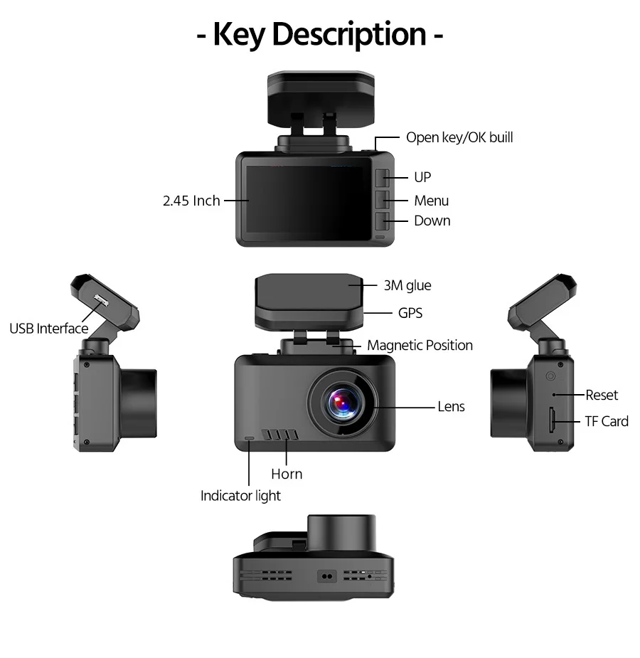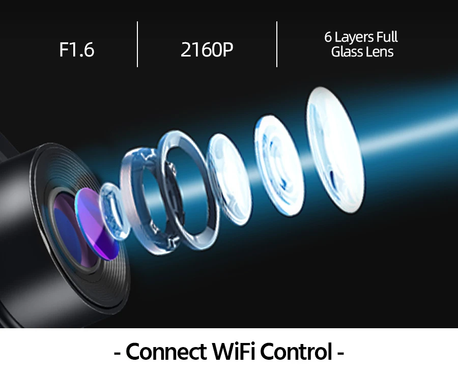 With the Revolutionary Super Night Vision Technology, the car dash cam can capture clearer videos and photos even in low-light night conditions. F/1.6 Largest Aperture Available + 6-Glass Wide Angle Lens with Proprietary Focal Length of the lens gives you more clear smaller details.