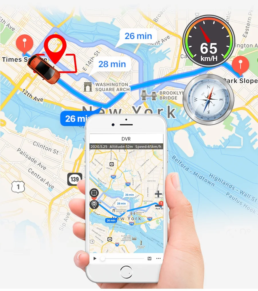GPS function is to record the driving route location.we can see the speed and driving route on the computer by provided player.