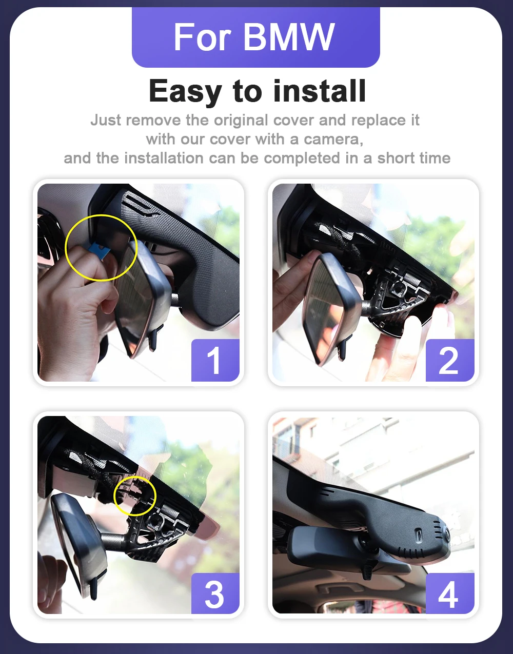 Just remove the original back cover and replace it with our dashcam and it takes a short time to install.