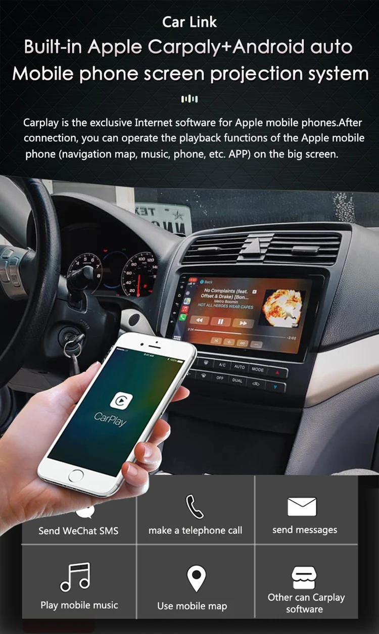 3) Support GPS Navigation , Bluetooth , Picture -in -picture,Split-screen Multitasking, Steering Wheel Control.