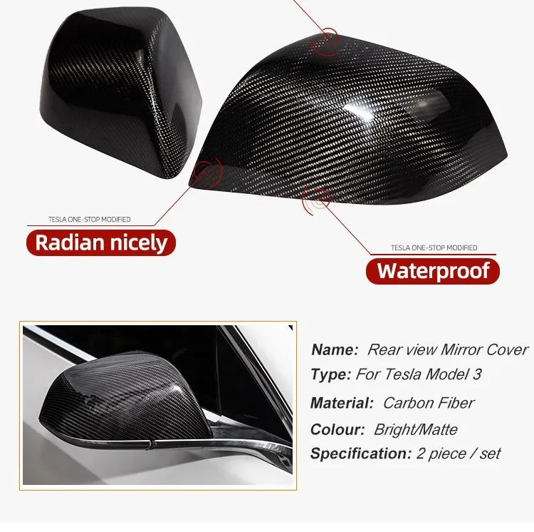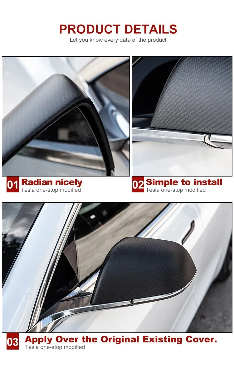 Car Real Carbon Fiber Paste Side Door Mirror Cover For Tesla Model 3 Model Y 2021-2023 Auto Exterior Accessories Rearview Cover
