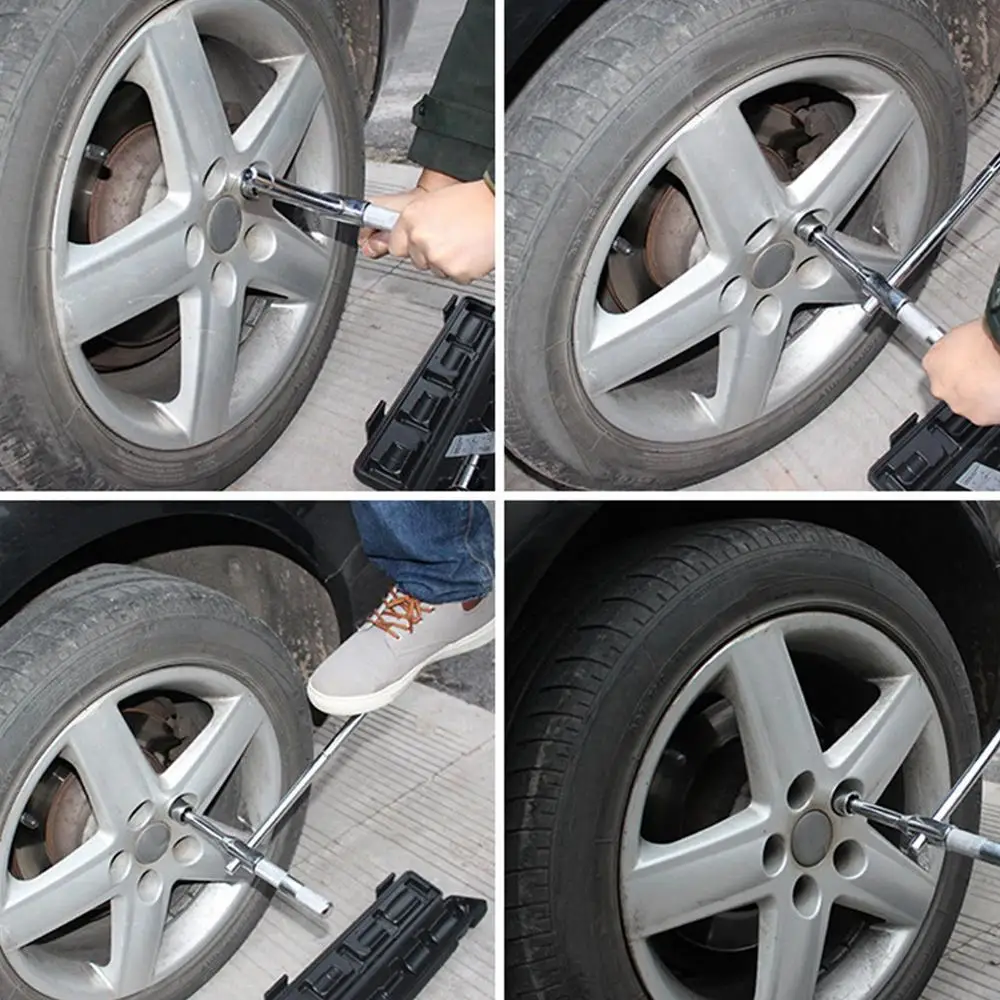 1.Versatile Design: This car tire wrench is suitable for most types of tires and can be adjusted to choose from four sizes. It is a cross socket wrench tire changing tool that can help you change tires quickly and easily.