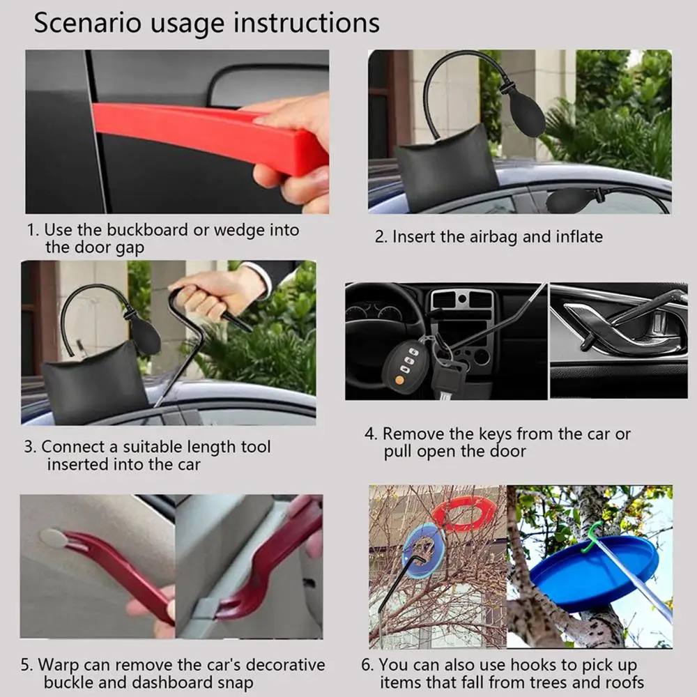 These tools help you deal with unexpected situations in daily life without worrying about scratching the paint surface. Made of PVC environmentally friendly nylon rocker board, it's not easy to break. The air wedge pump is made of high-quality TPU material and comes with a portable zipper storage bag.