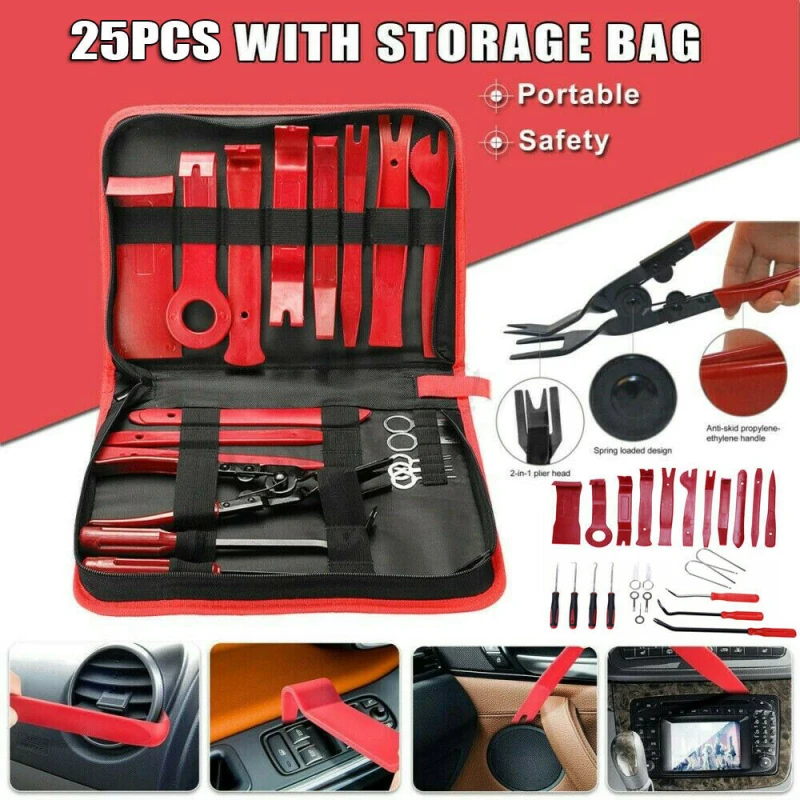 1. Multifunctional - Total 25pcs different kinds of trimming tools, excellent for trimming car audio/radio, door panel, window, or automotive interior repairing and furniture restoration