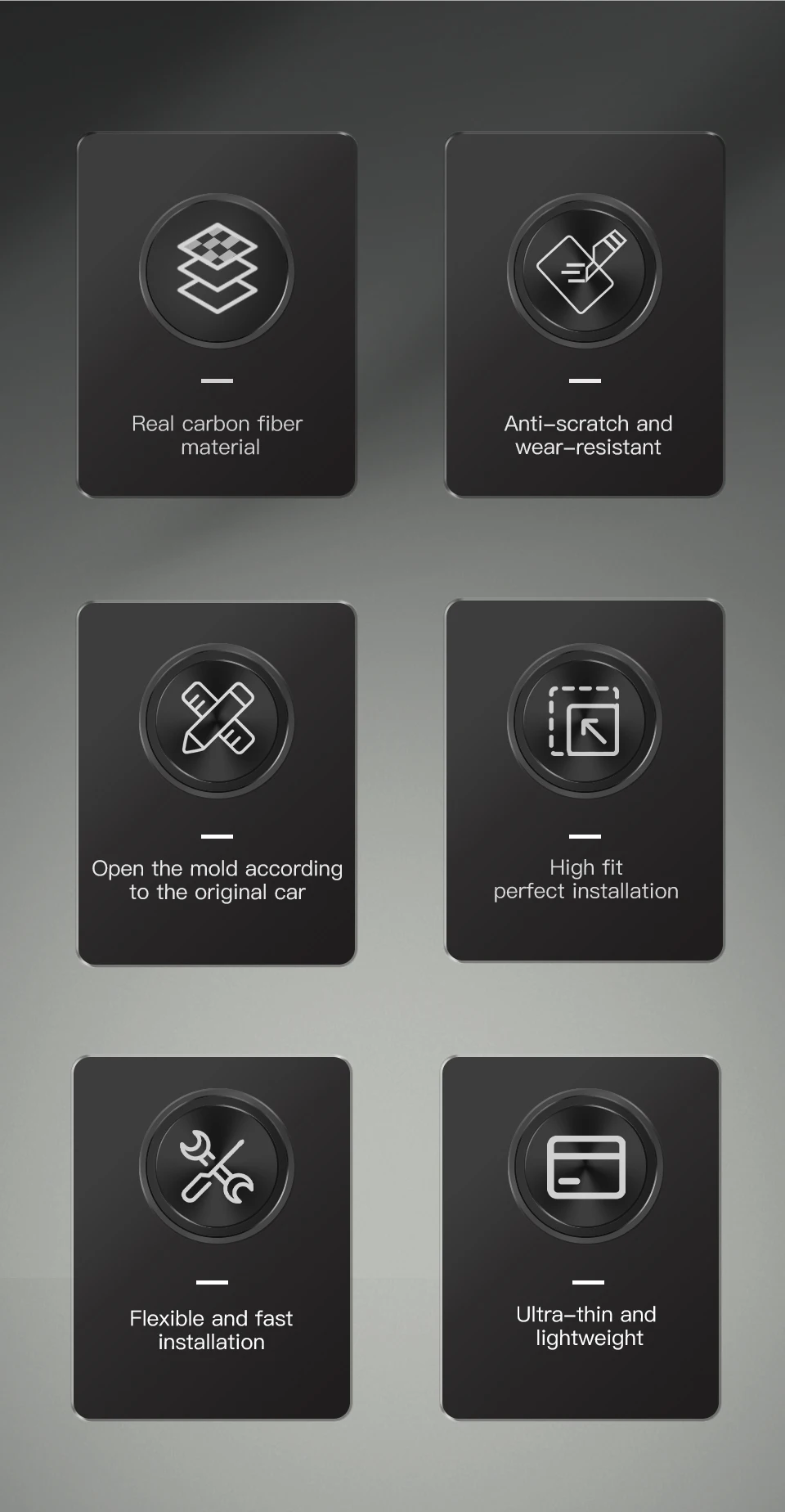 1) Made of high quality carbon fiber, dry carbon fiber hot Pressing process. Not ABS, not water transfer process.