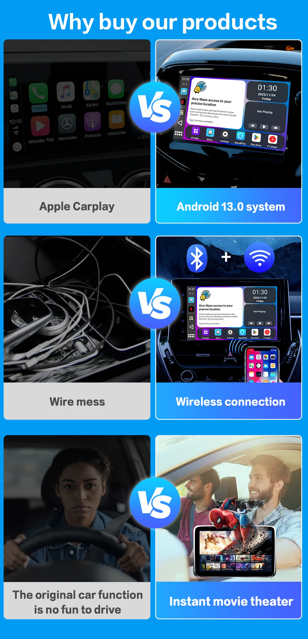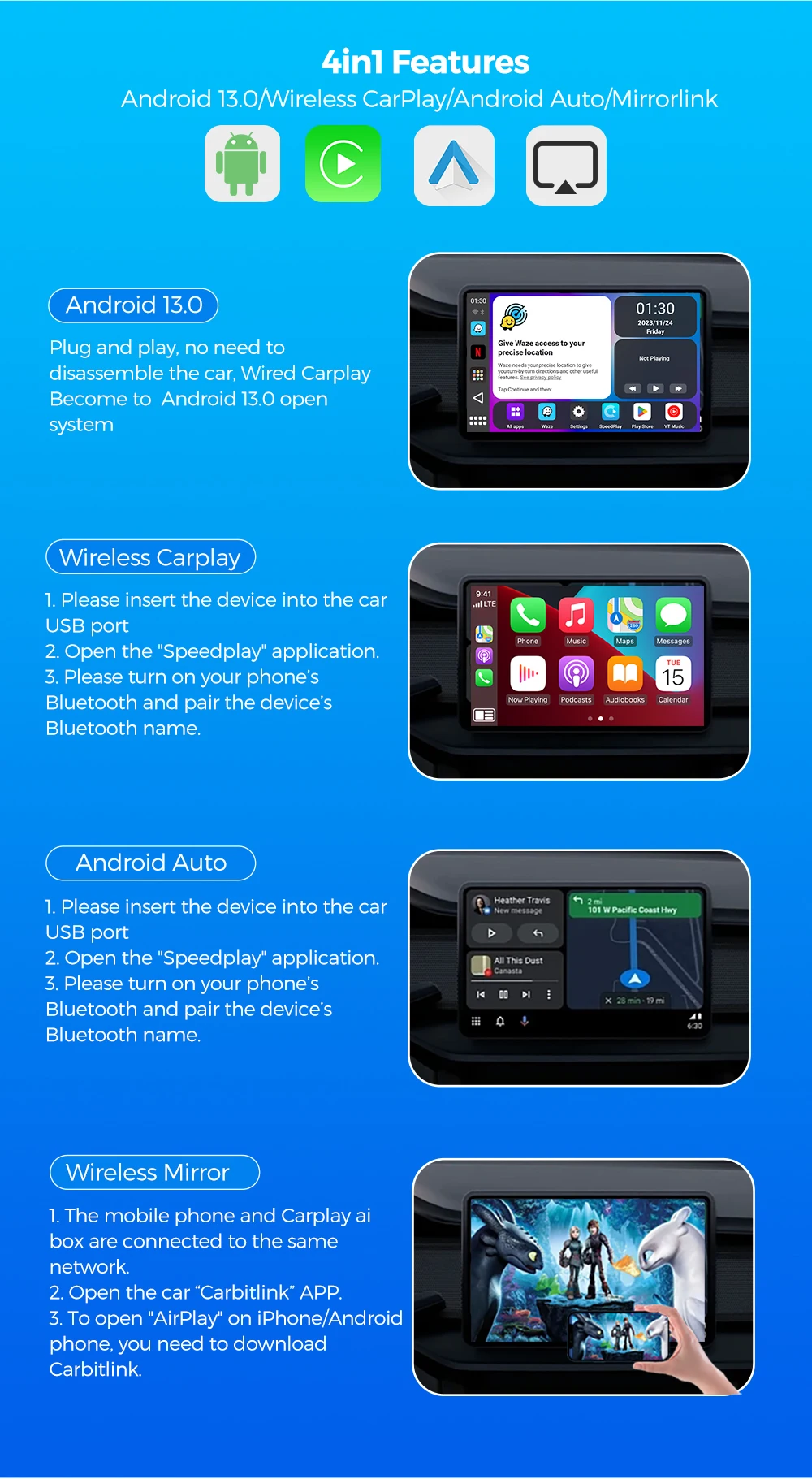 2.For Android Phone:Wireless Android Auto(Phone need android 11.0 above+,also android phone support wireless android auto feature)