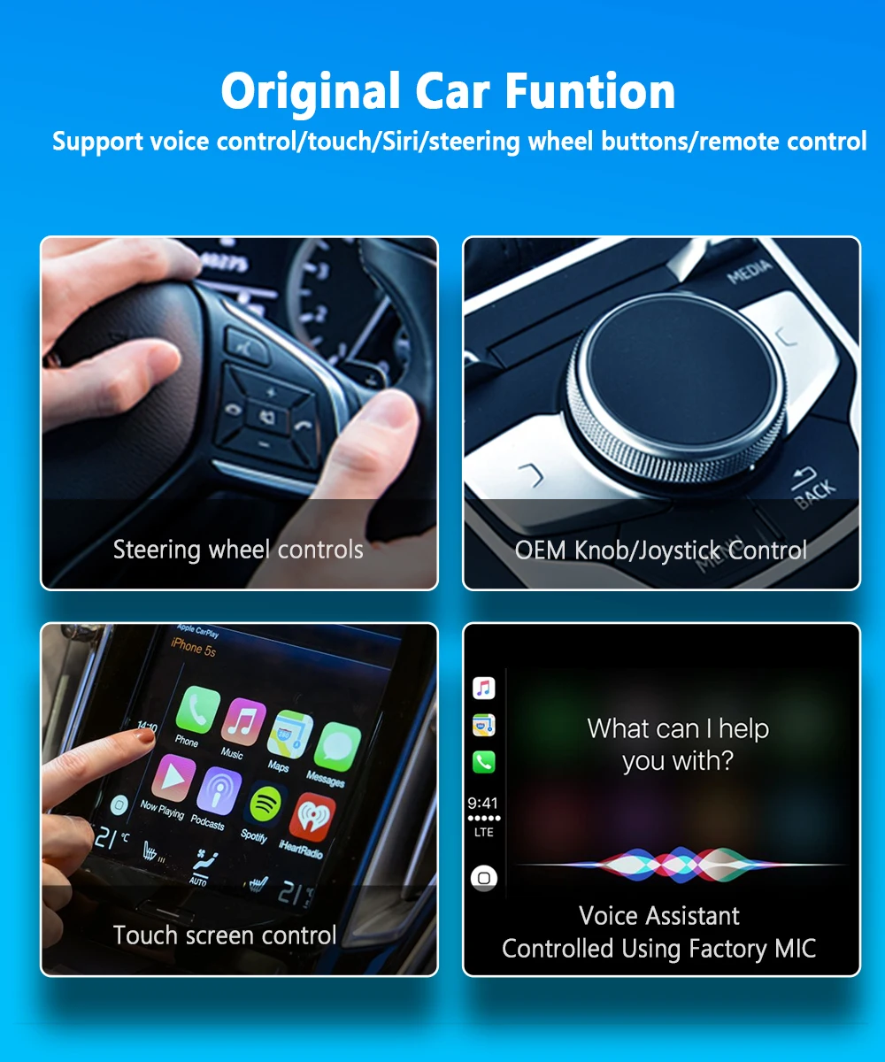 Support voice control/touch/Siri/steering wheel buttons/remote control