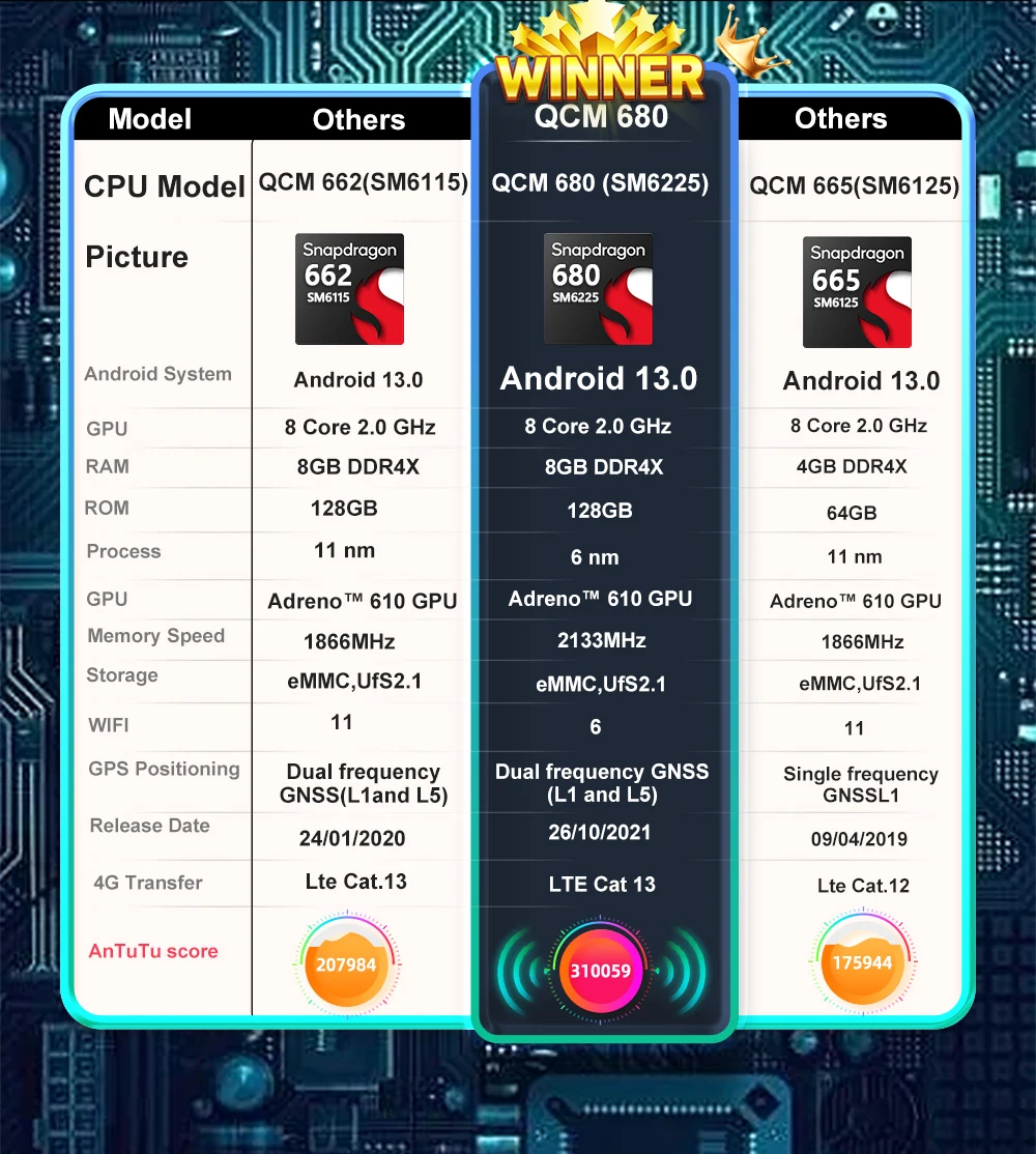 The CPU uses a 6nm process and has a built-in 64bit ARM, 8-core CPU (4xA73 2.4GHz