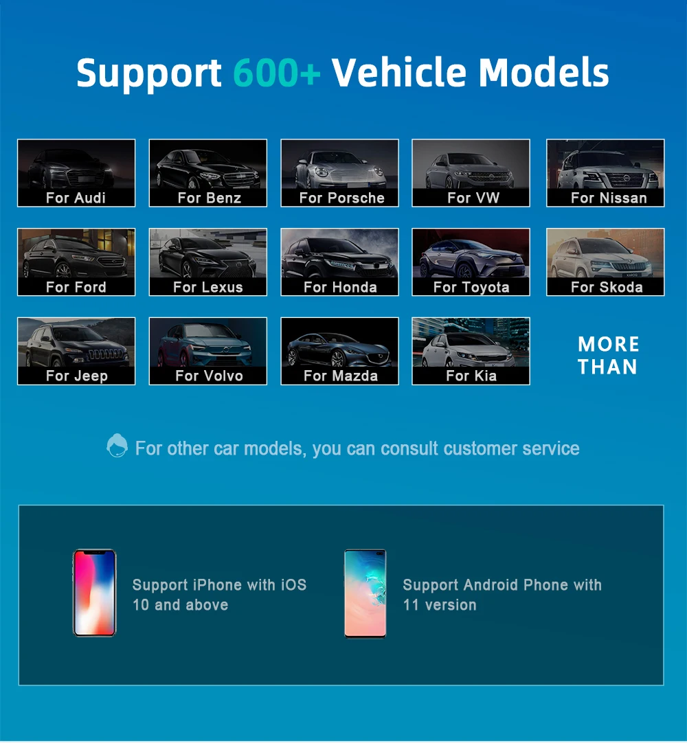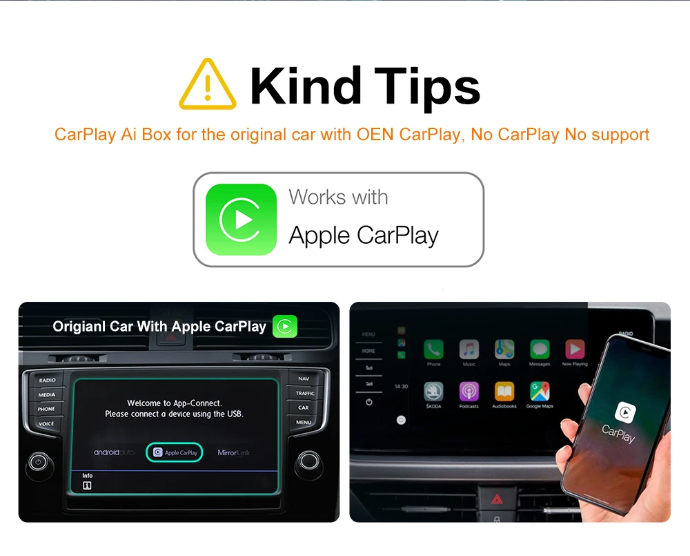 3. For Carplay: Supports iPhone 6 and above, and the software version is iOS 10 and above.