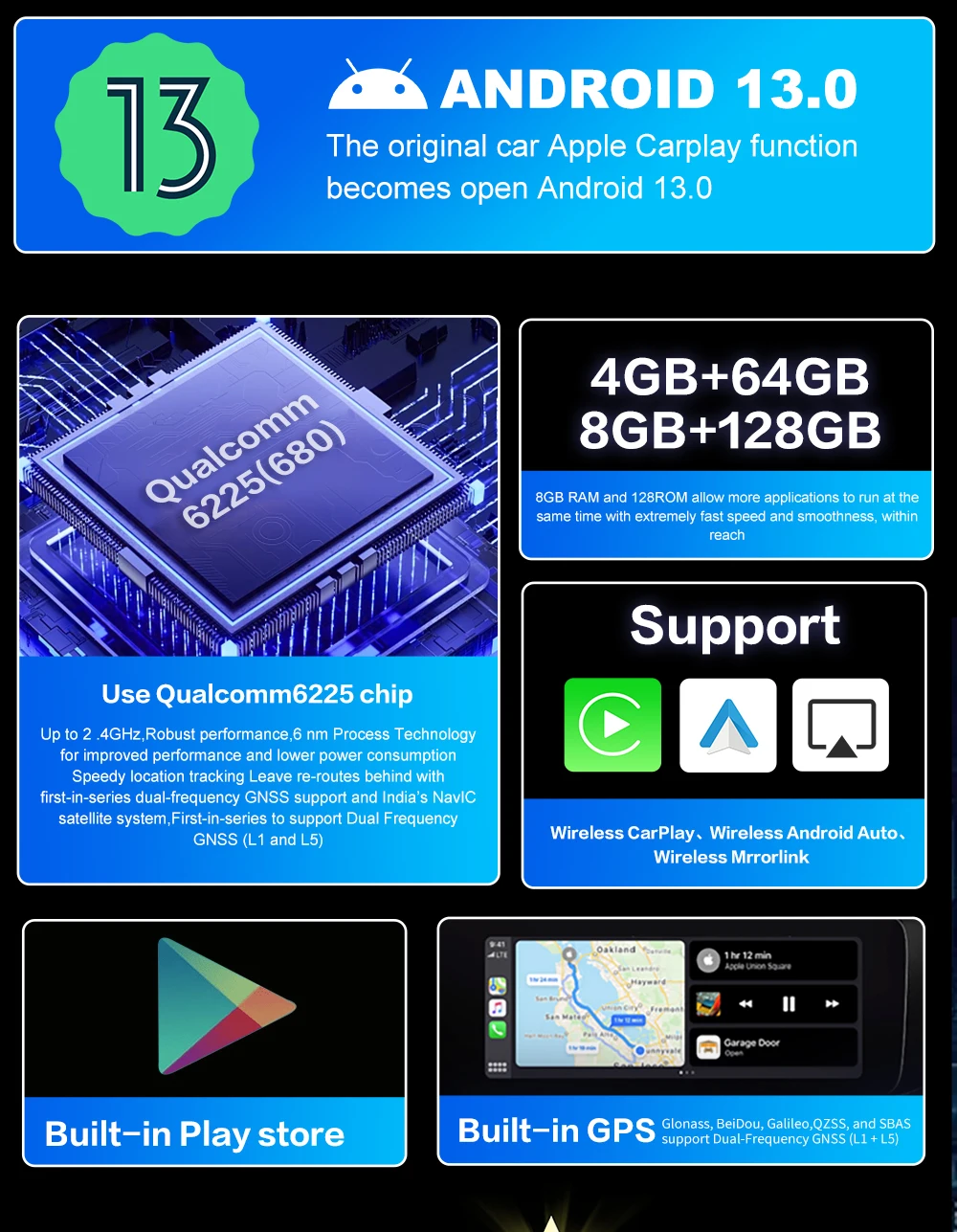 Android 13.0/Wireless CarPlay/Android Auto/Mirrorlink