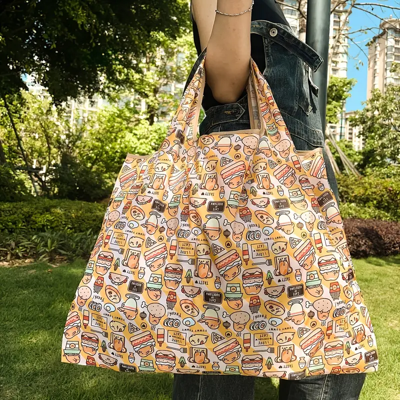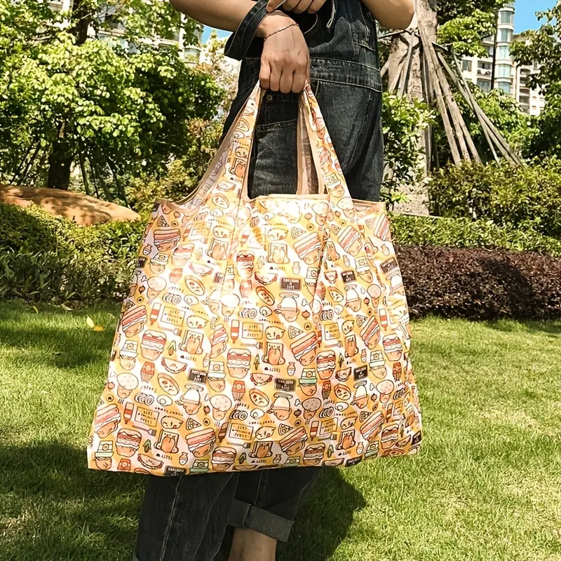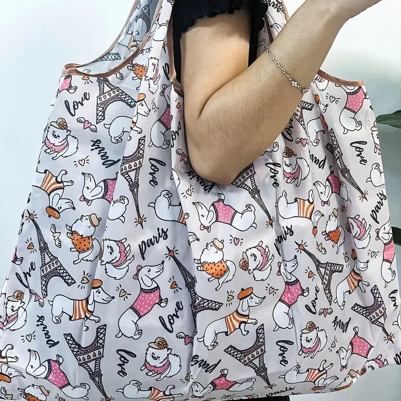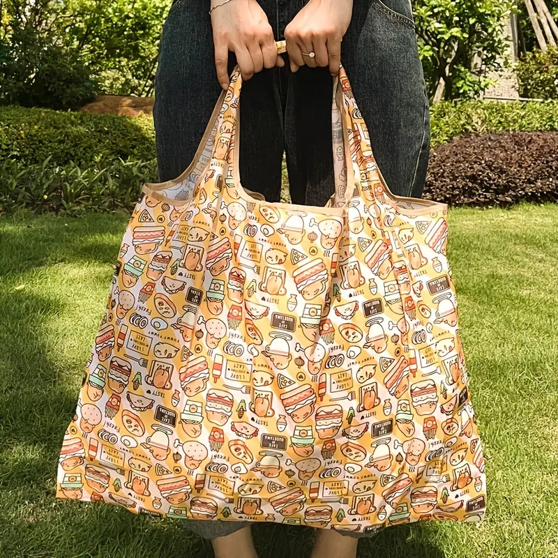 Cartoon Pattern Large-capacity Shopper Bag, Foldable Lightweight Shoulder Bag, Reusable Bag