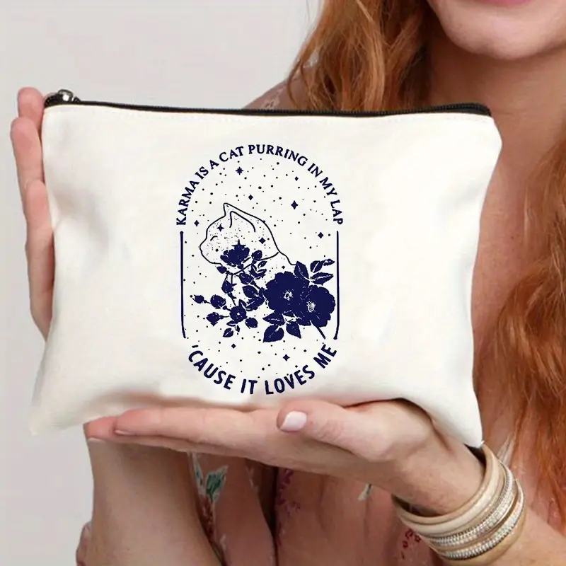 Cartoon Pattern Zipper Carry-On Bag, Lightweight Versatile Storage Pouch, Portable Makeup Bag