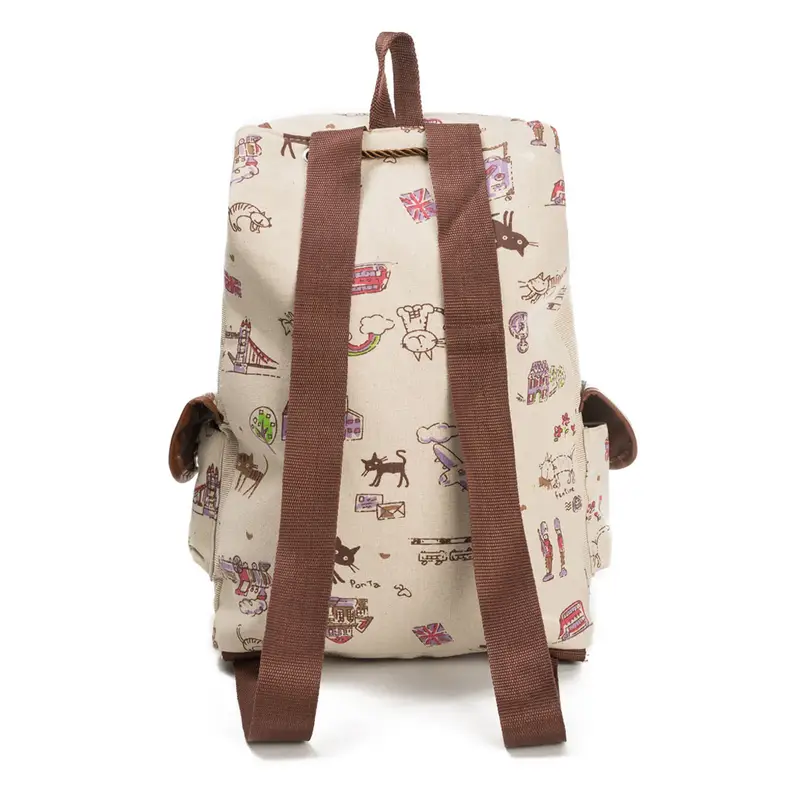Cat Pattern Flap Backpack, Cute Animal Print Bookbag For Students, Fashion Work & Travel Backpack