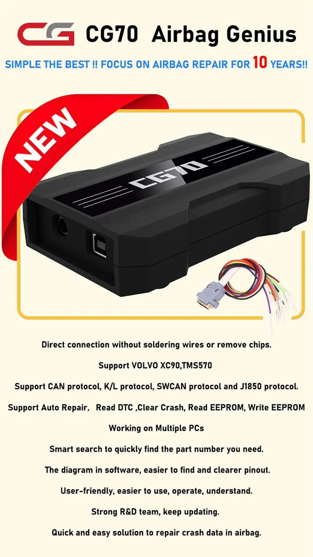 CGDI CG70 Airbag Reset Tool Clear Fault Codes One Key No Welding No Disassembly
