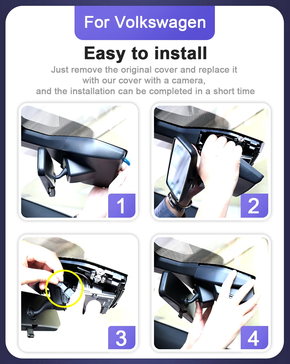 Just remove the original back cover and replace it with our dashcam and it takes a short time to install.