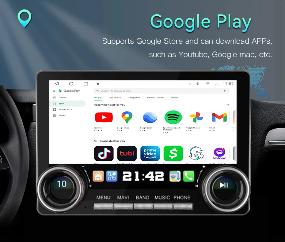 Built-in Play Store, you can download APPs online, such as Google Maps, Youtube, etc.