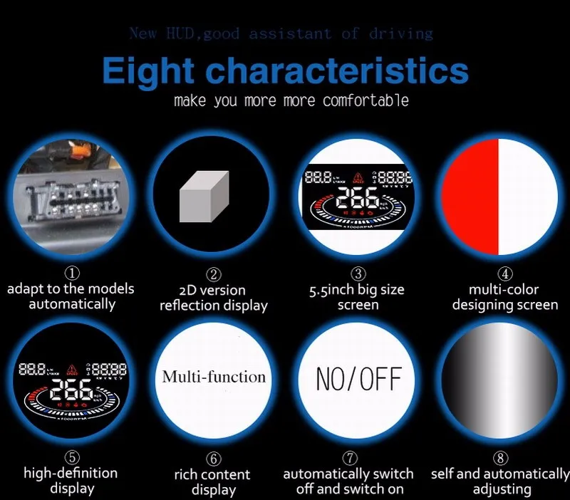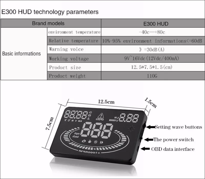 6.  Ability to display a huge range of car statistics including: speed, engine rotational speed, water temperature, battery voltage, instantaneous fuel consumption, average fuel consumption, local time,single driving time,mileage measurement, shift reminder, fatigued driver reminder, low voltage alarm, high temperature alarm, speed alarm, engine fault alarm, fault code elimination, ability to change units e.g. Kilometre/mile