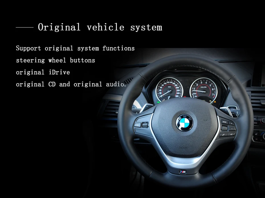 Support original system functions, steering wheel buttons, original CD, original iDrive and original audio.