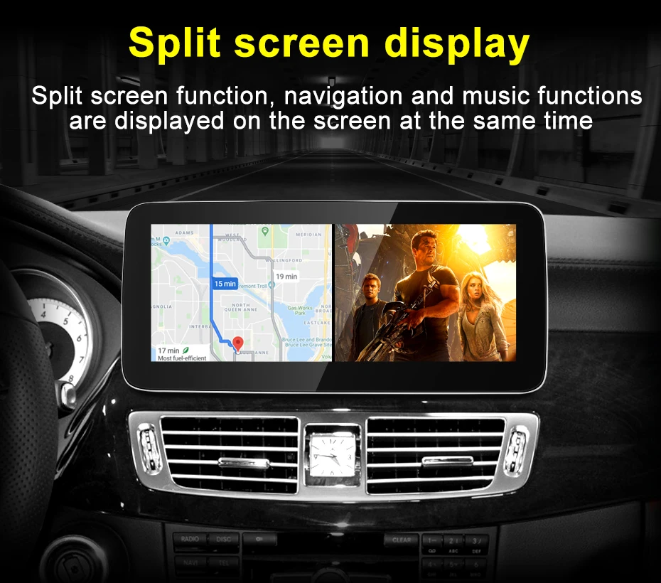 Split screen function, navigation and music functions are displayed on the screen at the same time