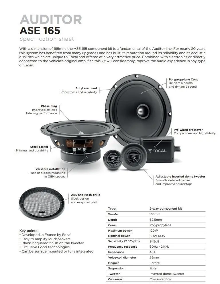FOCAL ASE165 AUDITOR 16.5cm 2-Way Separated Kit -Exclusive Component Kit -