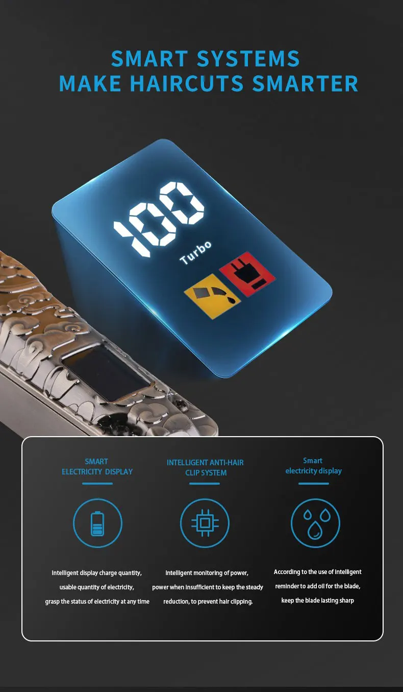 Function: wet haircut,dry haircut,Fast Charging,Charging indication