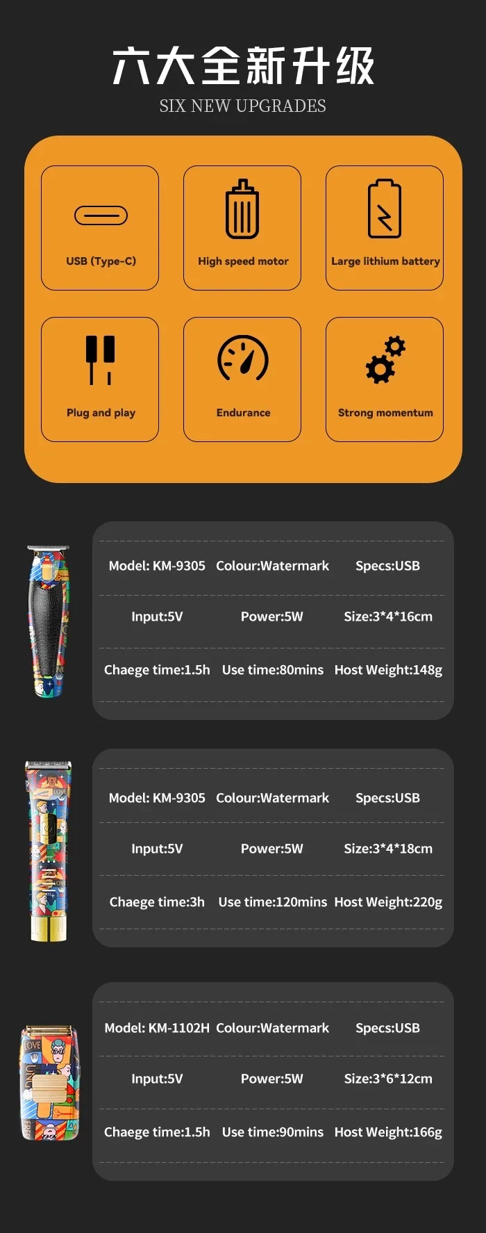Function: wet haircut,dry haircut,Fast Charging