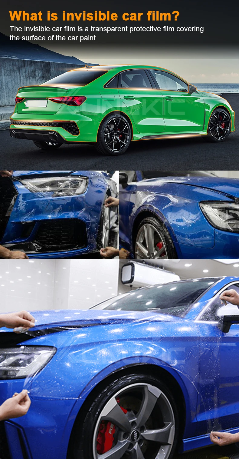 -The invisible car film is a transparent protective film covering the surface of the car paint.