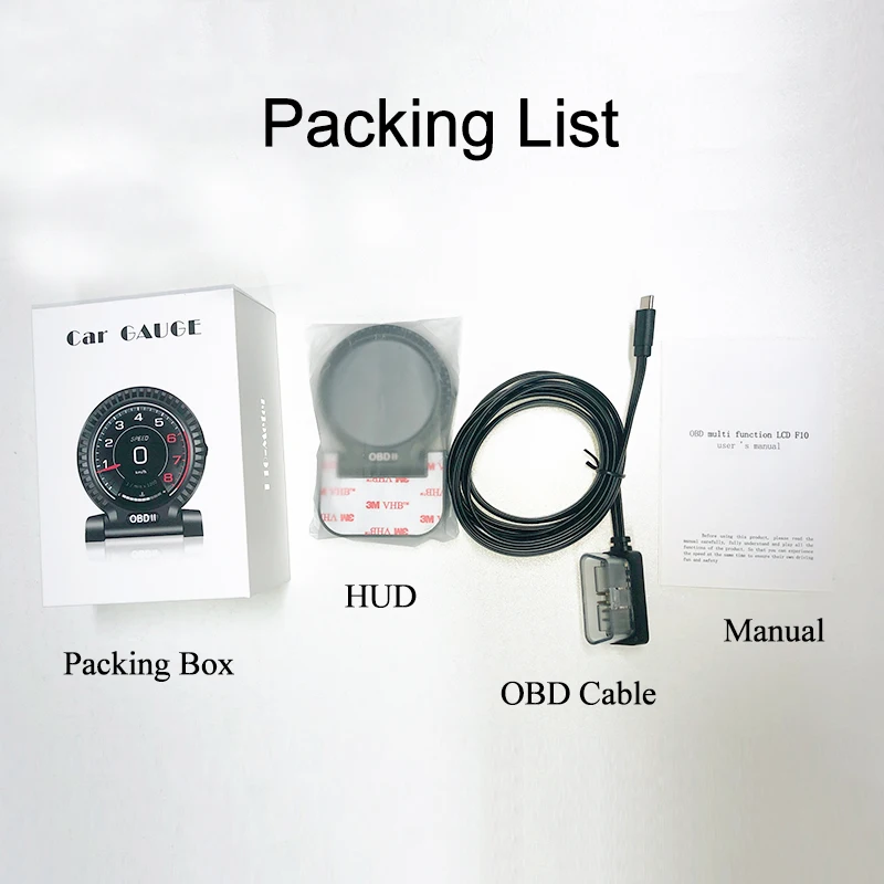 Speed(KM/H, MPH), water temperature, voltage, fuel consumption, rotation speed, single mileage, total mileage, driving time, driving direction, time, intake pressure, oil temperature, air-fuel ratio, turbo pressure(some cars will not display), intake pressure, acceleration test, brake test, clear fault code, read data stream.