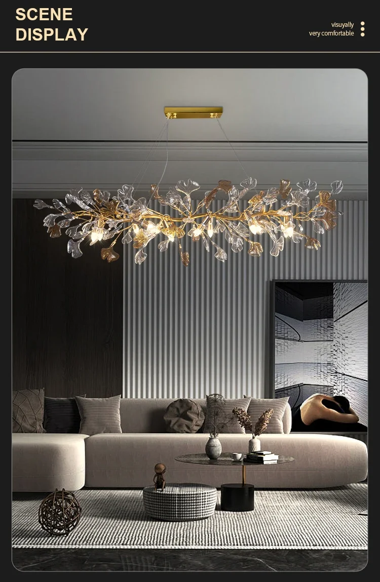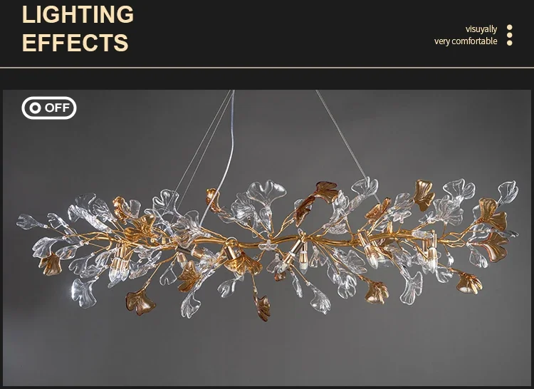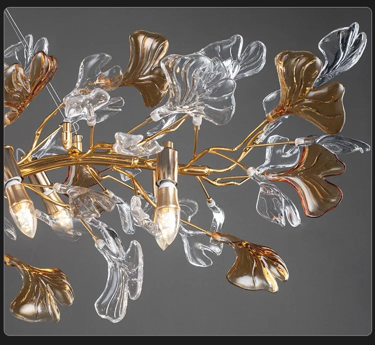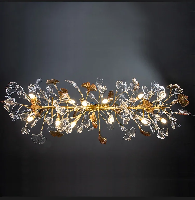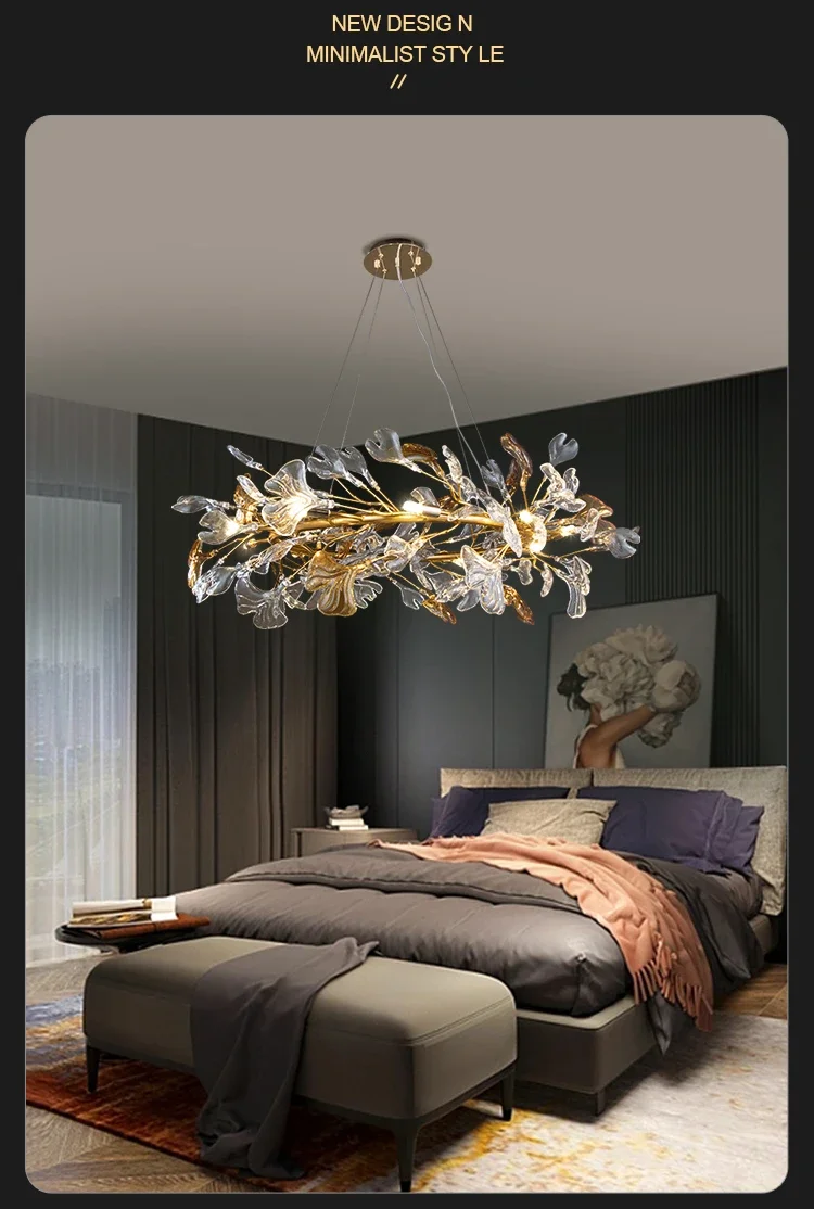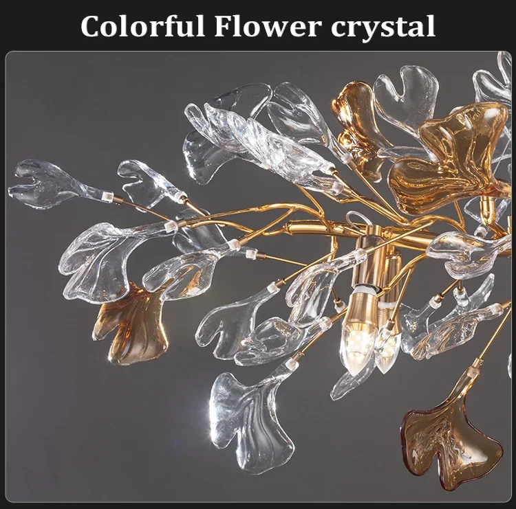 Luxury hanging crystal chandelier bedroom living room dining room branch round glass leaf crystal chandelier branch chandelier