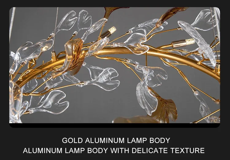 Features: Round Glass Leaf Luxury Gold Hanging Crystal Chandelier