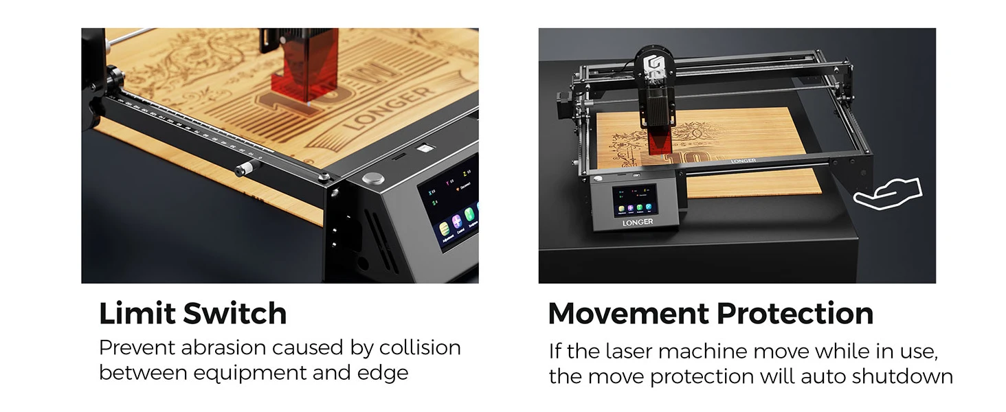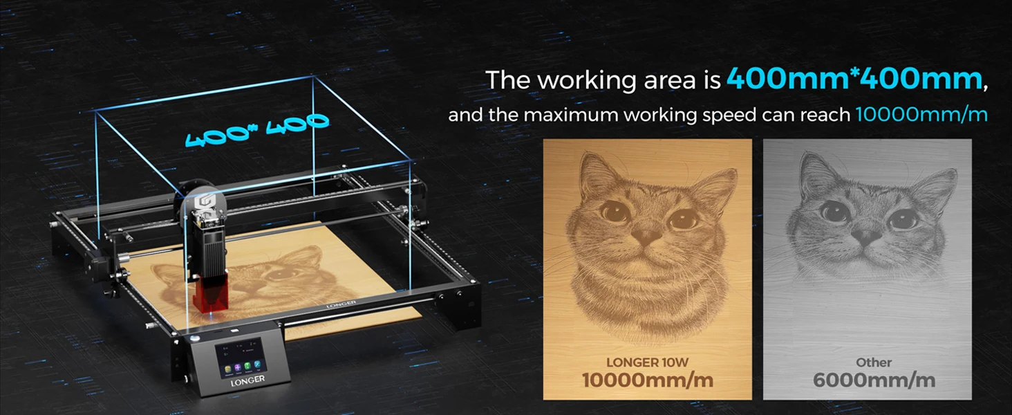 【Superior Cutting】: Longer RAY5 10W laser engraving machine features exceptional cutting capabilities, effortlessly cutting through 0.8 inches/20mm thick wood boards and 1.2 inches/30mm thick acrylic. Its spacious 400*400mm working area allows for the efficient completion of various processing tasks.