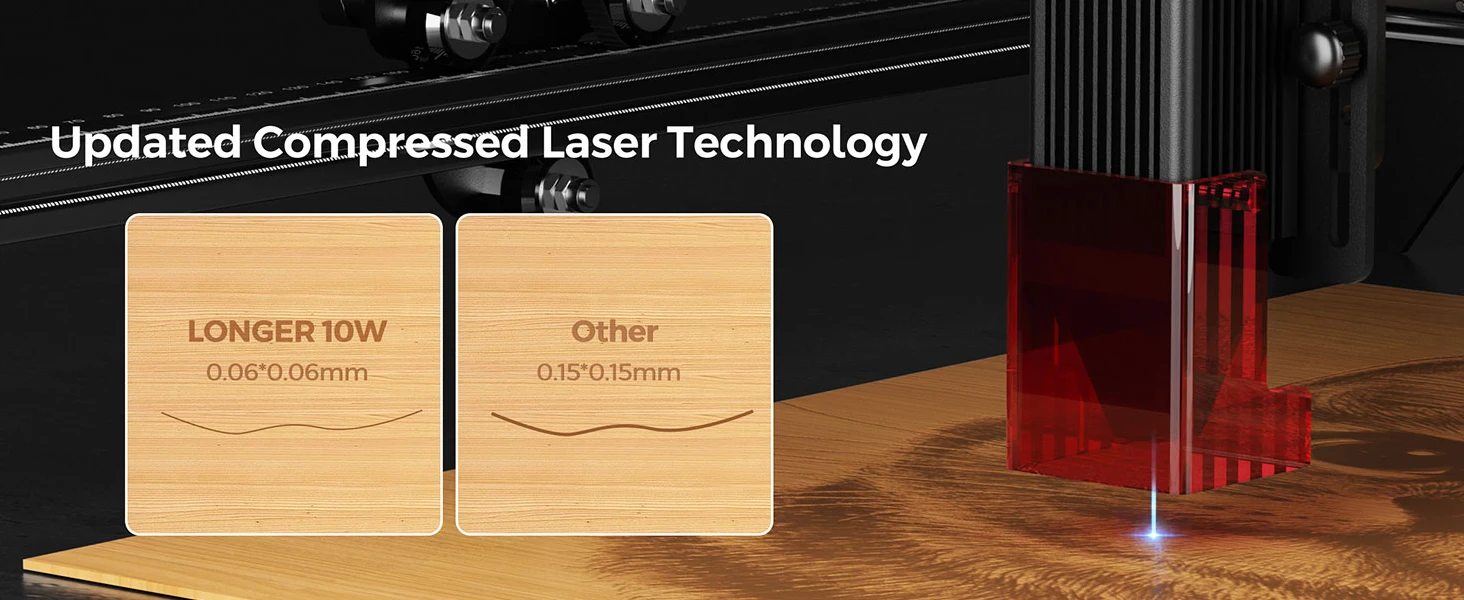 【Swift Speed】: Equipped with dual-beam technology, the high-power laser engraving machine achieves an impressive maximum engraving speed of 10,000mm per minute, showcasing outstanding production capabilities.