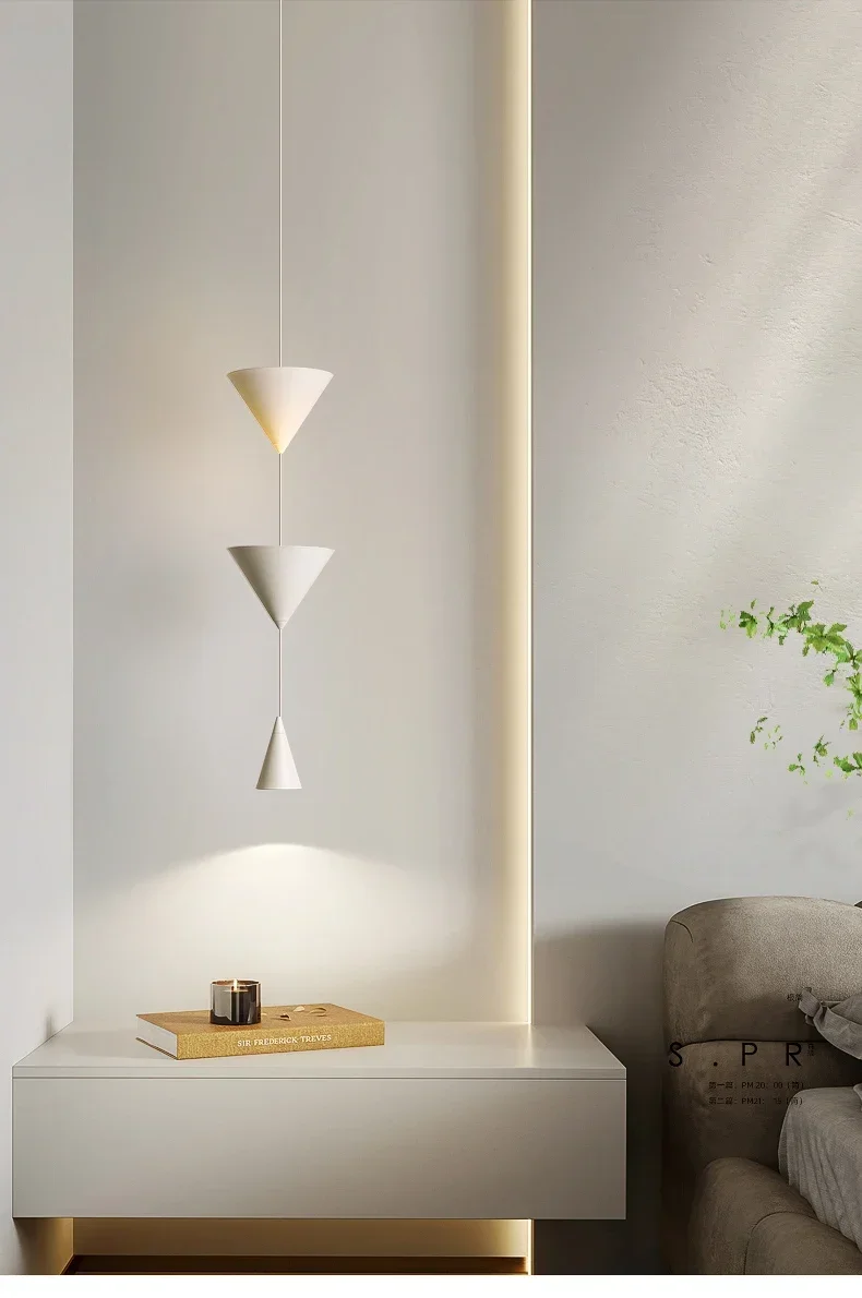 SANDYHA Minimalist Black White Bedside Pendant Light Modern Restaurant Home Led Living Dining Room Bar Counter Conical Lamp