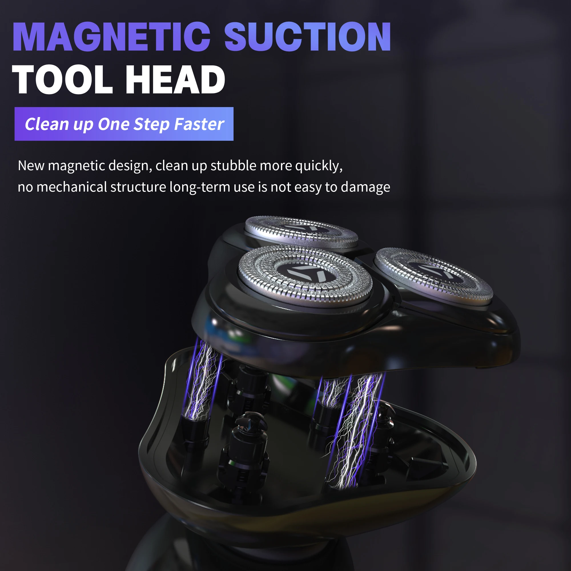 Because this electric shaver is a magnetic cutterhead with 3 built-in magnets, the cutter head is stable,and easily removable.