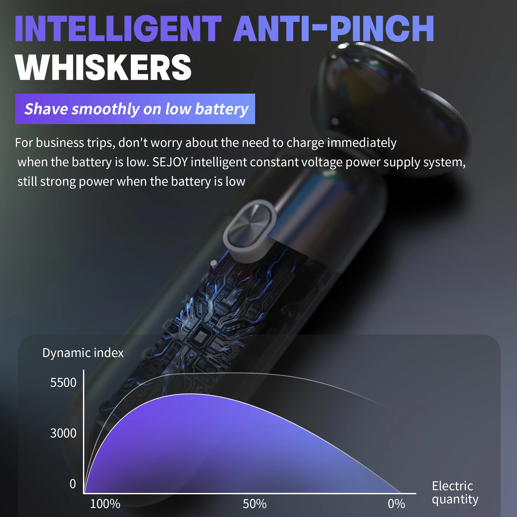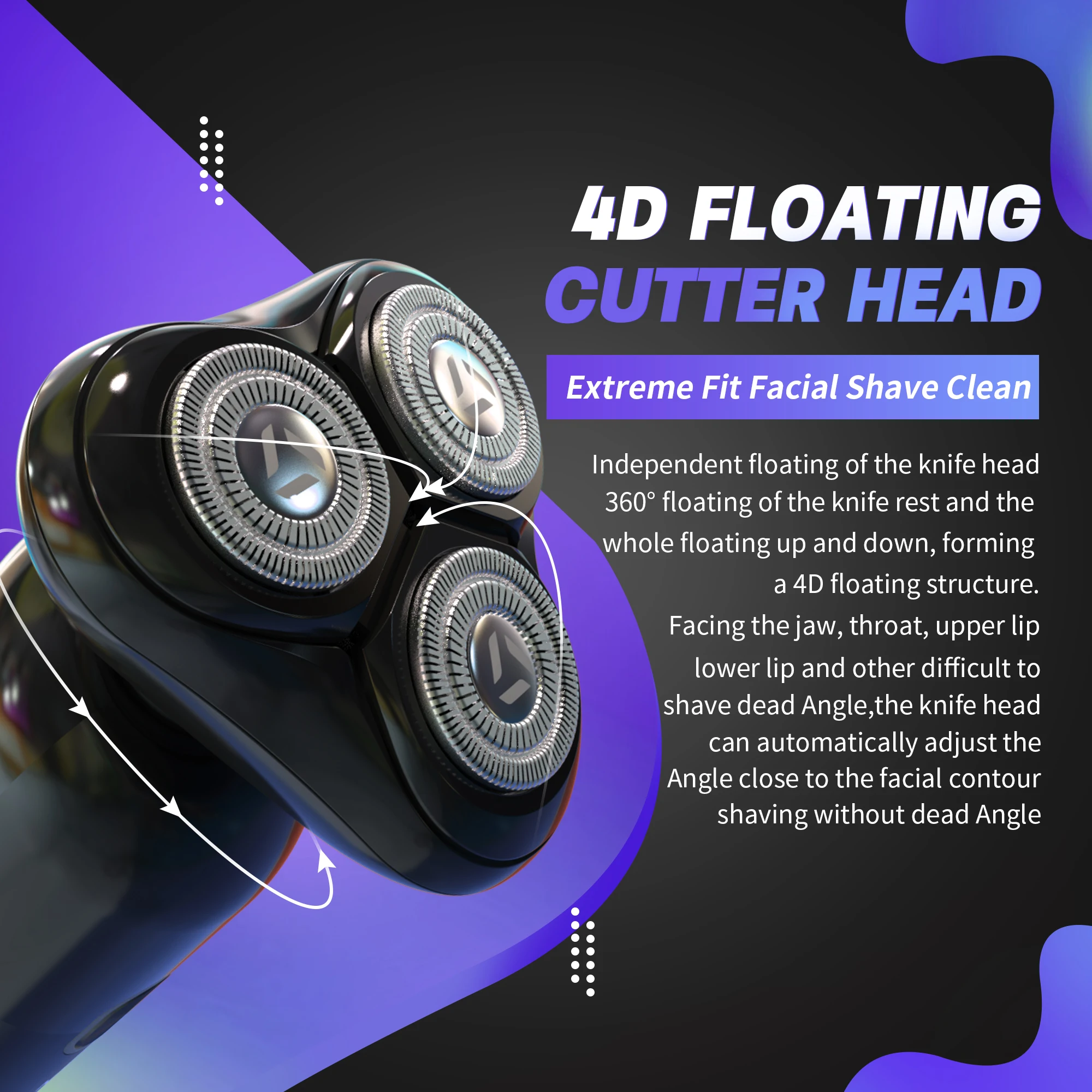 3 floating heads shave in 4 directions automatically adjusting to every curve of your face,neck and jaw with durable,