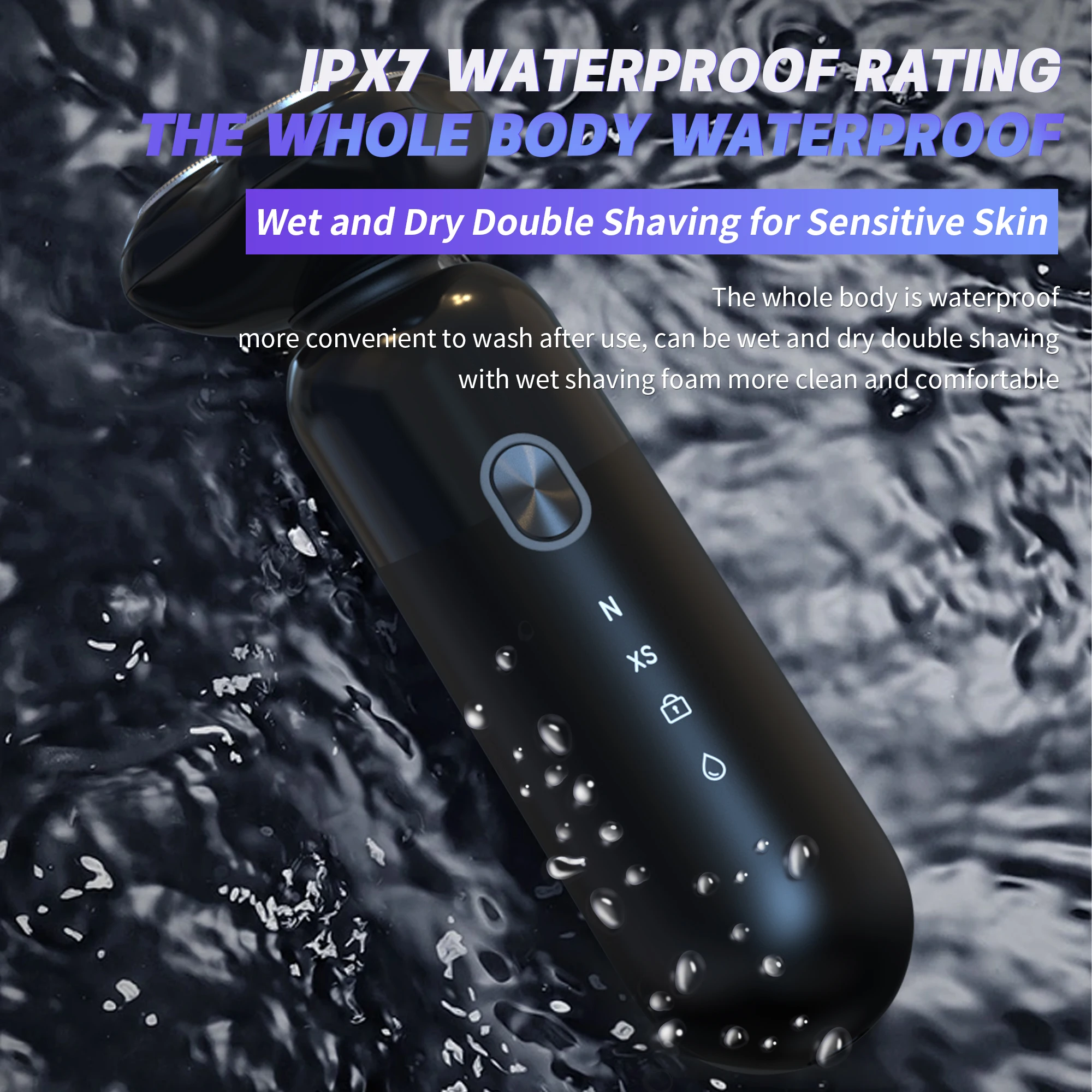 IPX7 waterproof designed means the razor can be totally put into water. Using Wet & Dry edition, shave with soap or cream will gain better shaving result.