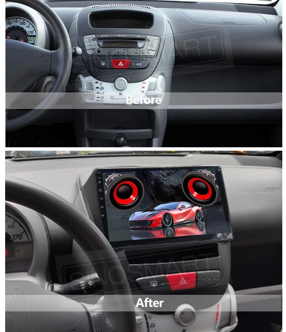 SINOSMART for Peugeot 107 Toyota Aygo Citroen C1 2005-2014 Car GPS Navigation Player 2.5D QLED Built-in DSP 8 Core CPU