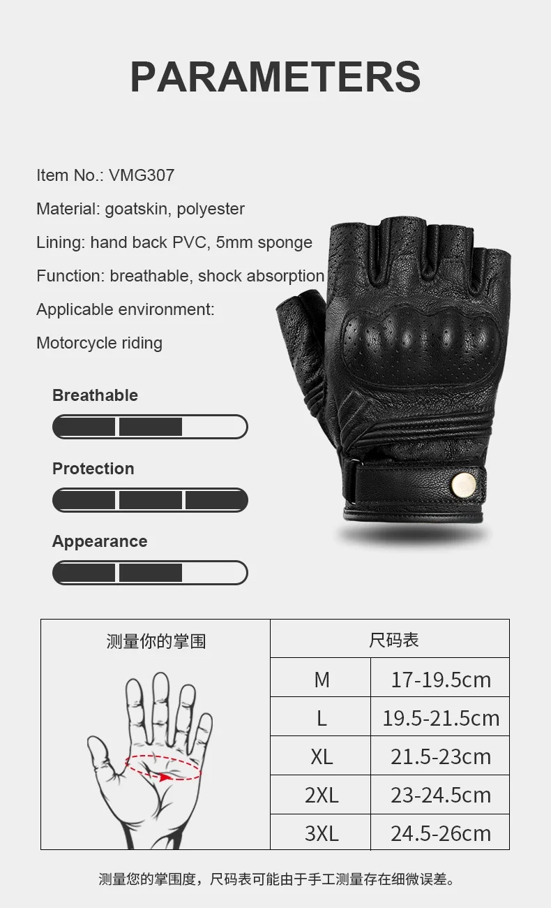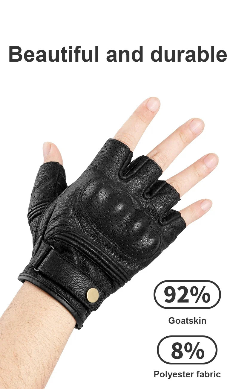 Summer Motorcycle Touchscreen Gloves for Men and Women Goatskin Half Finger Sports Motorbike Gloves with Hard Knuckle Protector