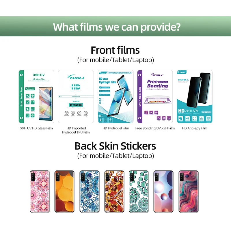 TUOLI 30pcs 50pcs X9H Friction-resistant Anti-steel Brush HD UV Screen Protector Flexible Glass Curved TPU Film Cutter Machine