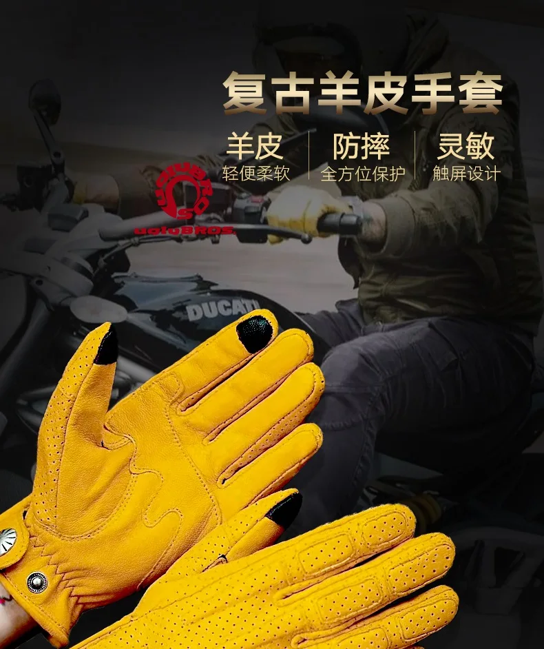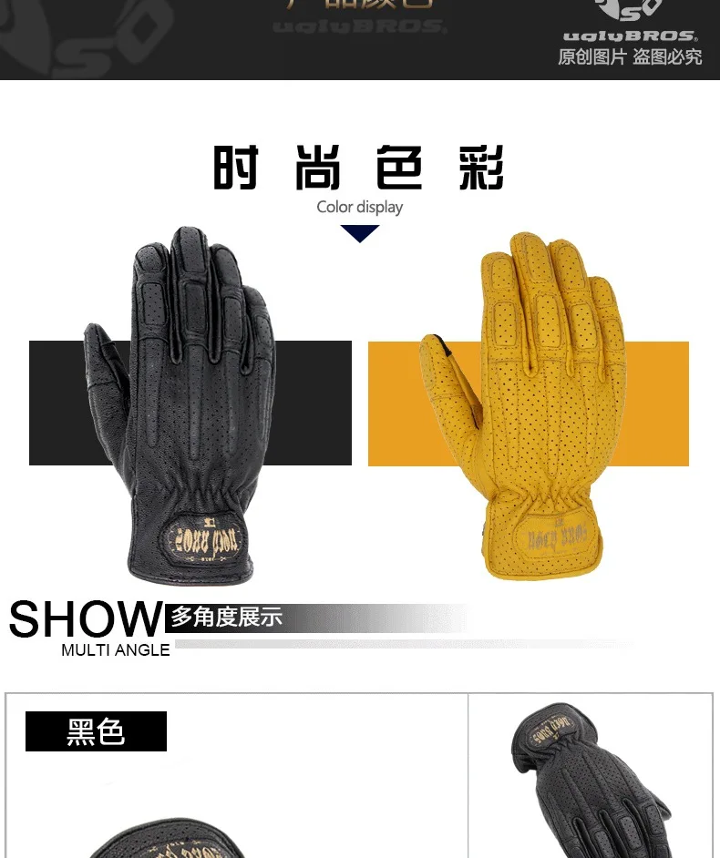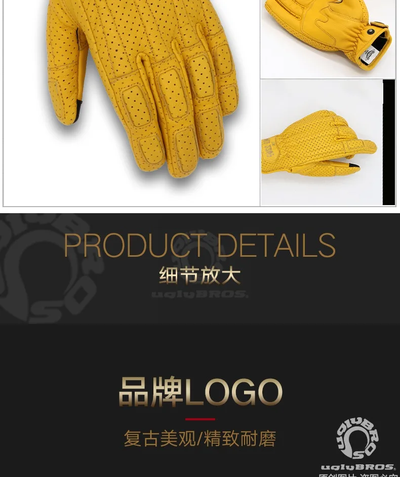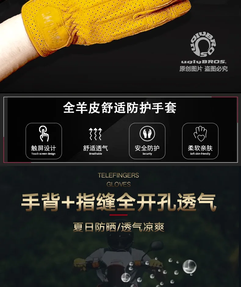 uglybros UBS551 Motorcycle gloves Summer Breathable leather motorcycle fall protection Touch screen retro Harley protection