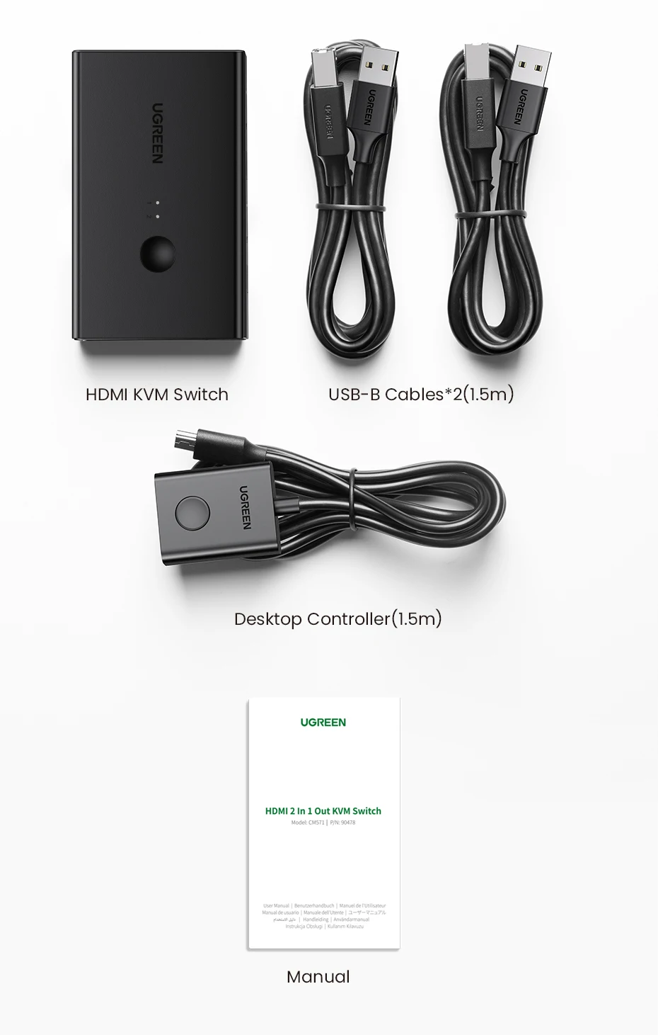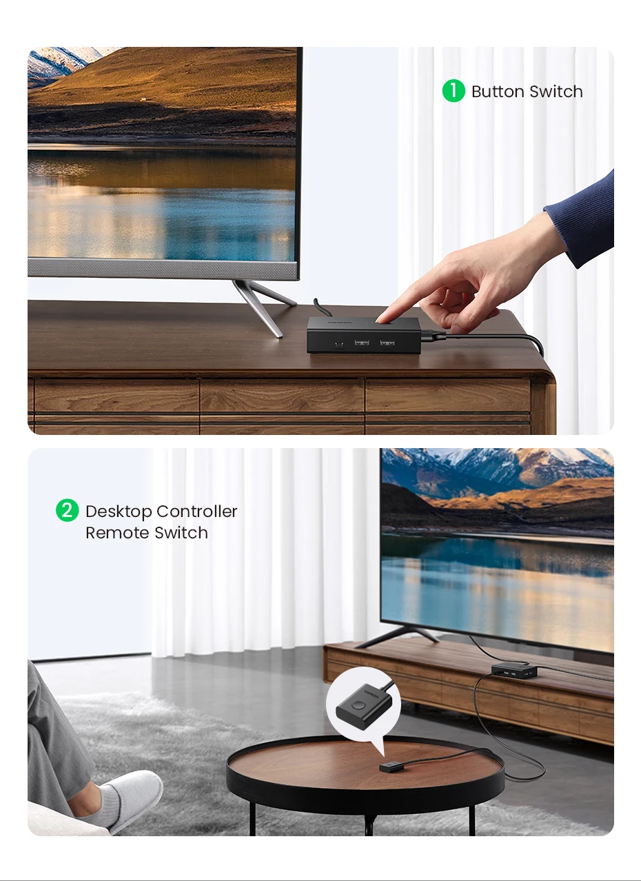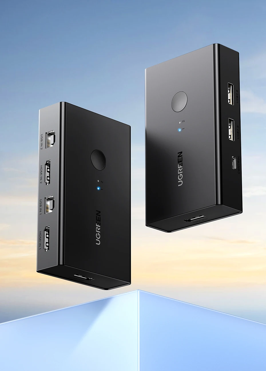 UGREEN HDMI KVM Switch 4K@60Hz USB 2.0 Switcher 2 in 1 Out for Printer Monitor Keyboard Mouse 2 PCs Sharing 1 Device Splitter
