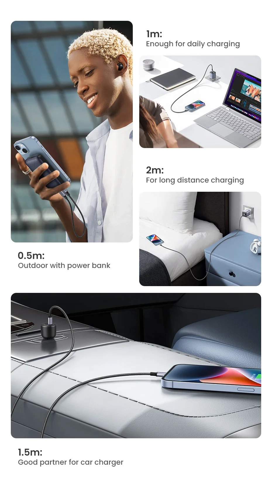 UGREEN MFi Certified USB C to Lightning Cable PD Fast Charging data  for Apple iPhone 14 13 12 11 ipad charger 20W 30W braided