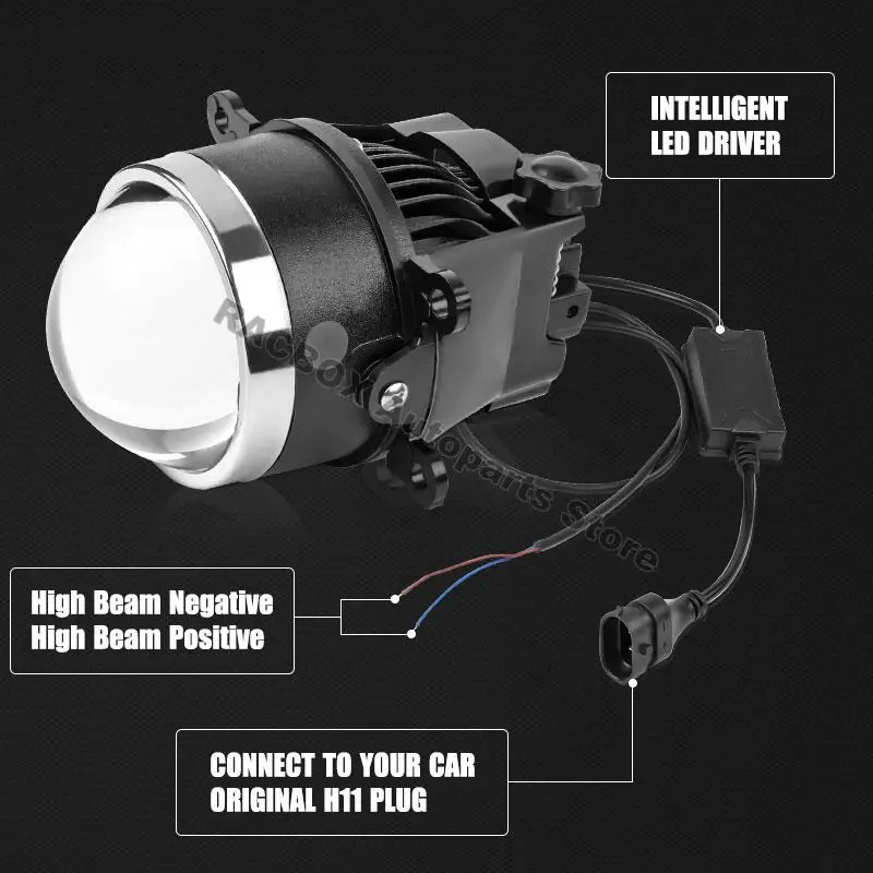 Projector Lens: Latest Triple convex curved optical lens, low beam and high beam will pass through different parts of lens, improve the brightness of 30%.