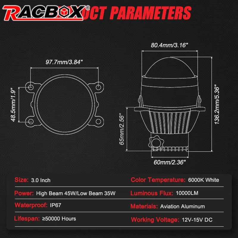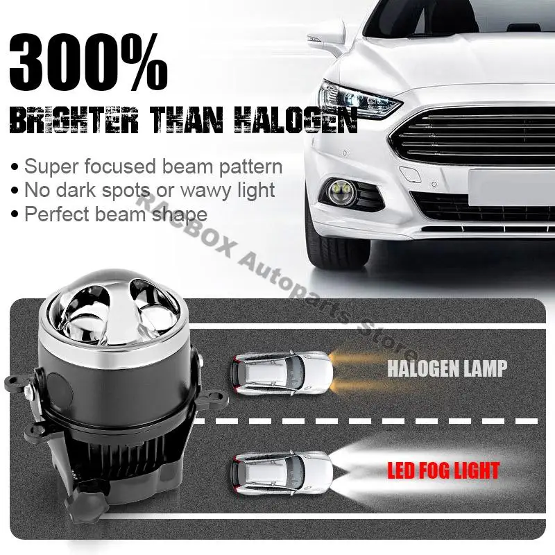 Better Distribution of Light - The fog lights lens is 3 inch, under the bigger size of the lens. Its light output can be distributed more evenly than other fog lights.