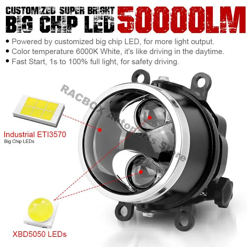 Energy Efficient - Built-in 3570W big chip LED, provide the greatest light output. The fog lights under powerful LED chips utilize less power to produce 300% brighter light than halogen lights.